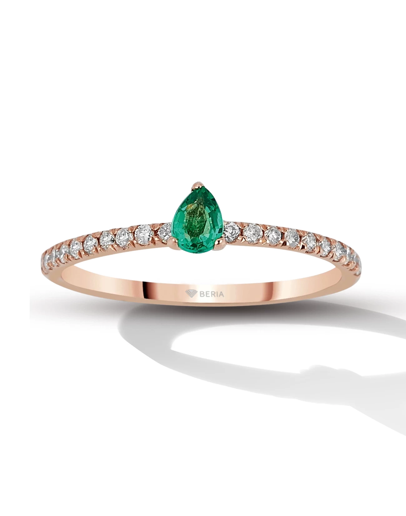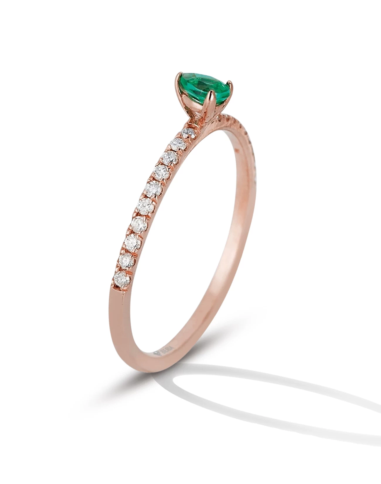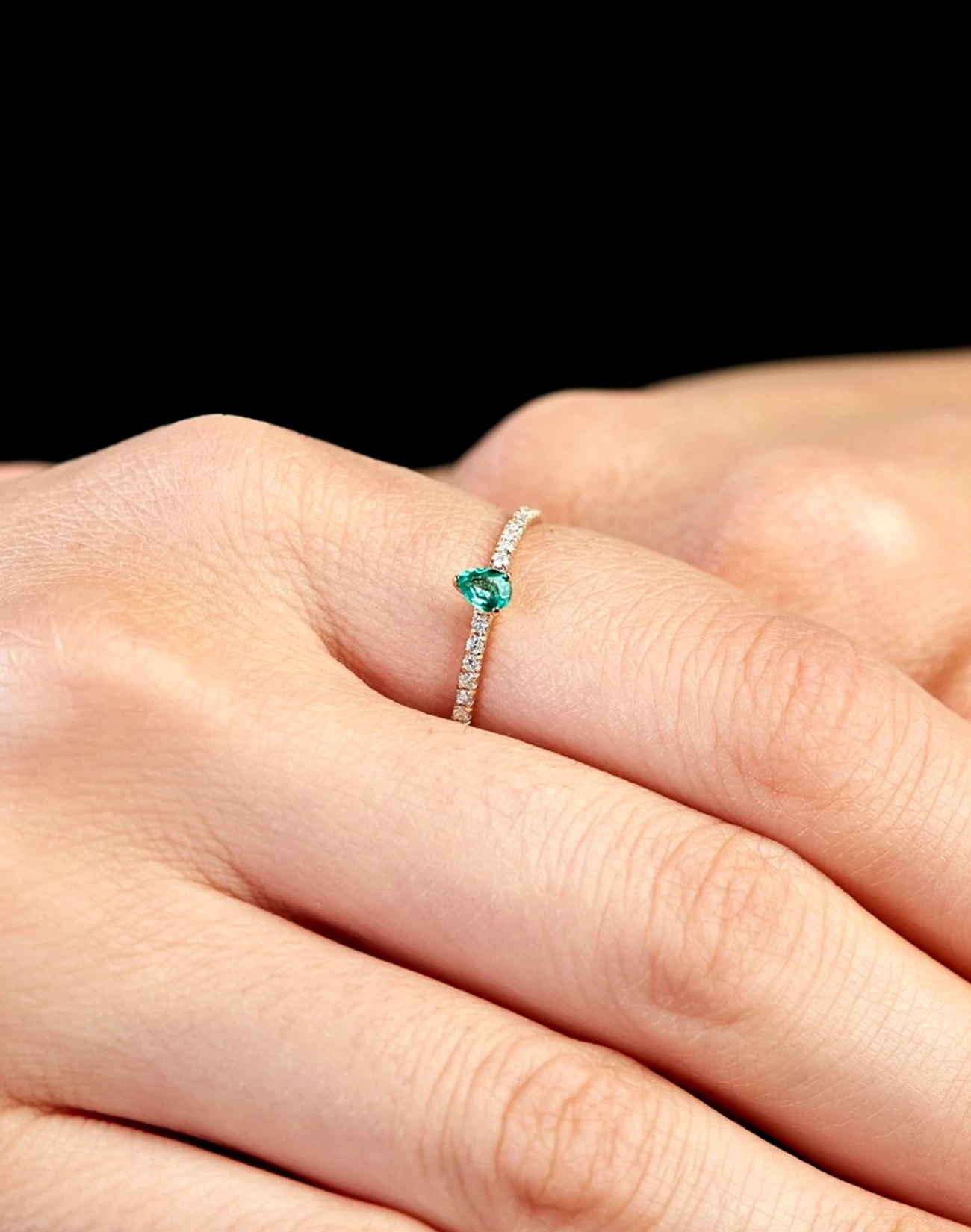 0,32 Karat Zümrüt Damla Taşlı Minimal Pırlanta Yüzük