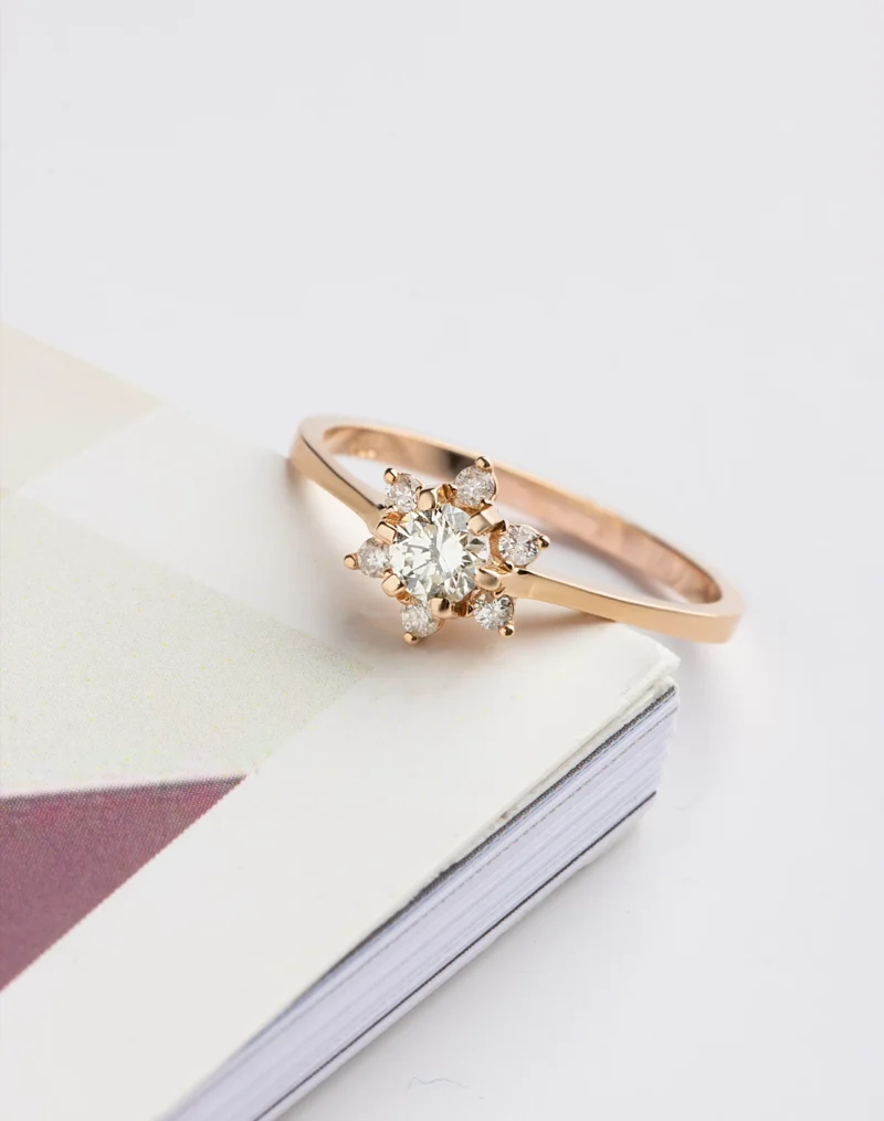 0,13 Karat Pırlanta Lotus Çiçeği Yüzük Rose
