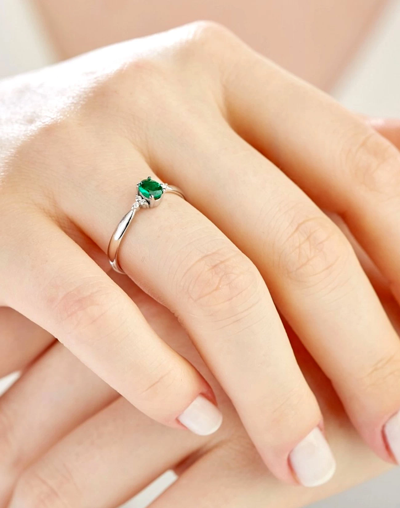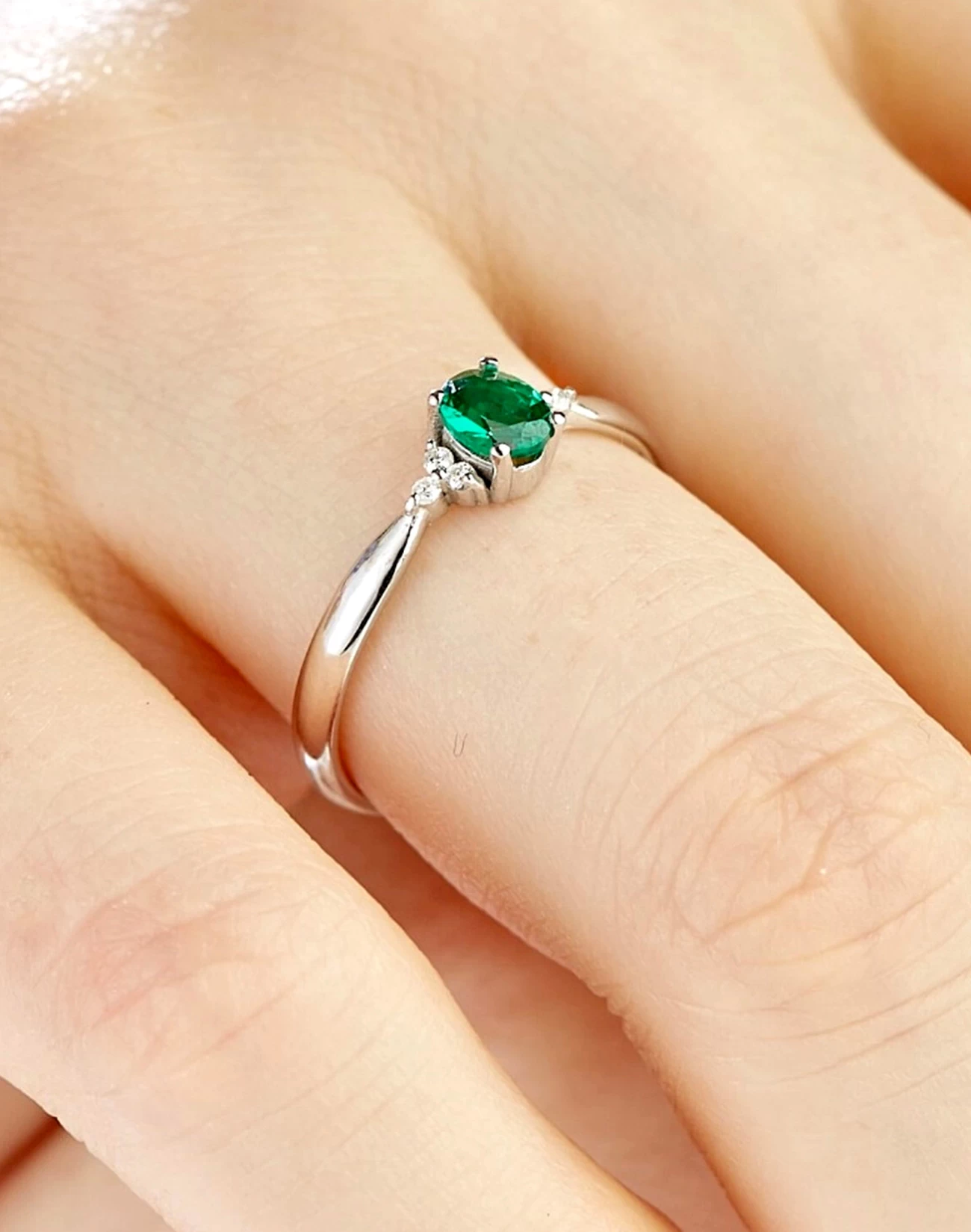 0,35 Karat Zümrüt Oval Taşlı Pırlanta Vintage Yüzük