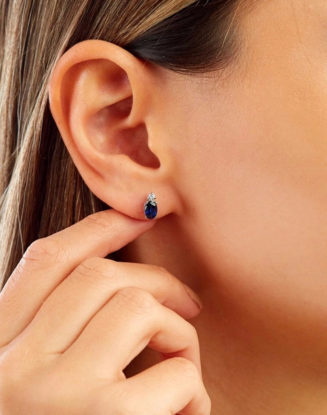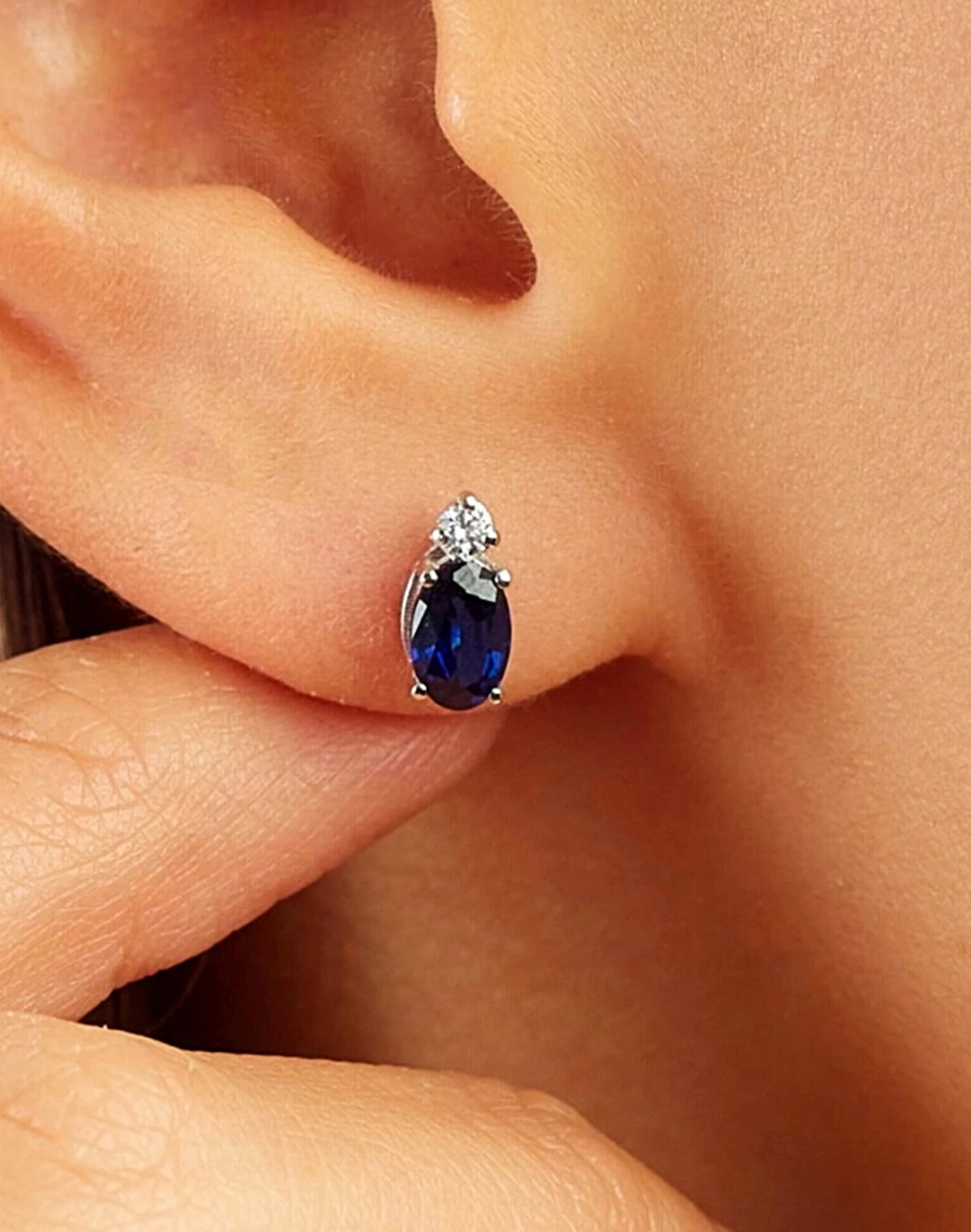 1,32 Ct. Oval Safir Taşlı Çivili Minamal Küpe