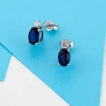 1,14 Ct. Oval Blue Topaz Taşlı Çivili Küpe