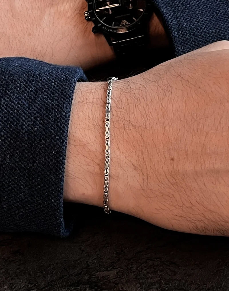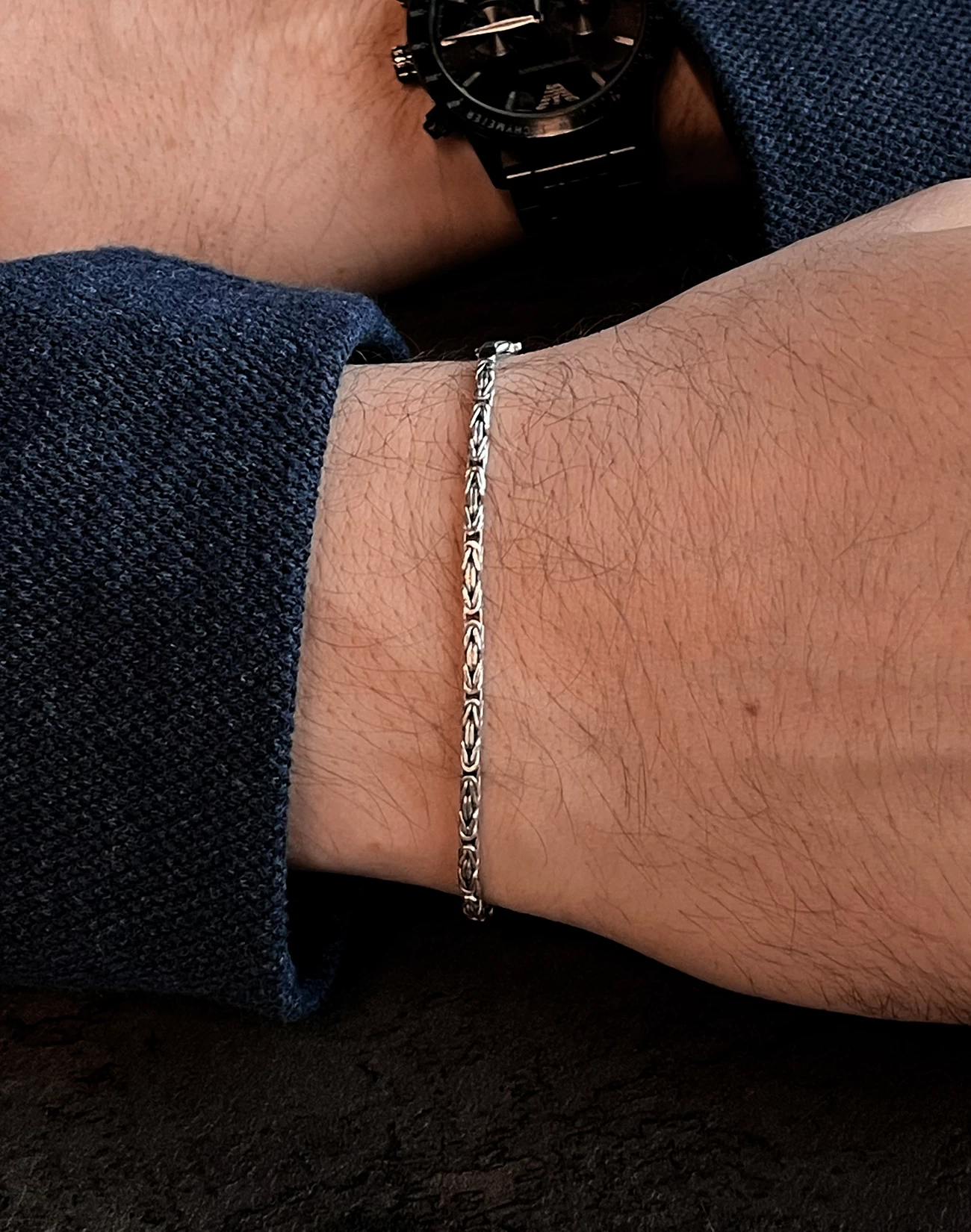 2 mm Kare Tasarım Kral Zinciri Gümüş Erkek Bilekliği