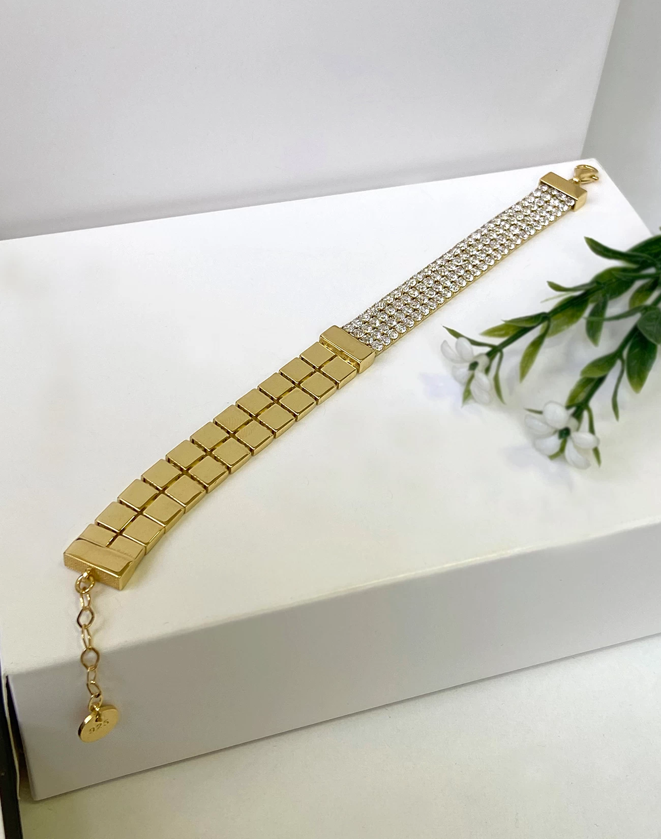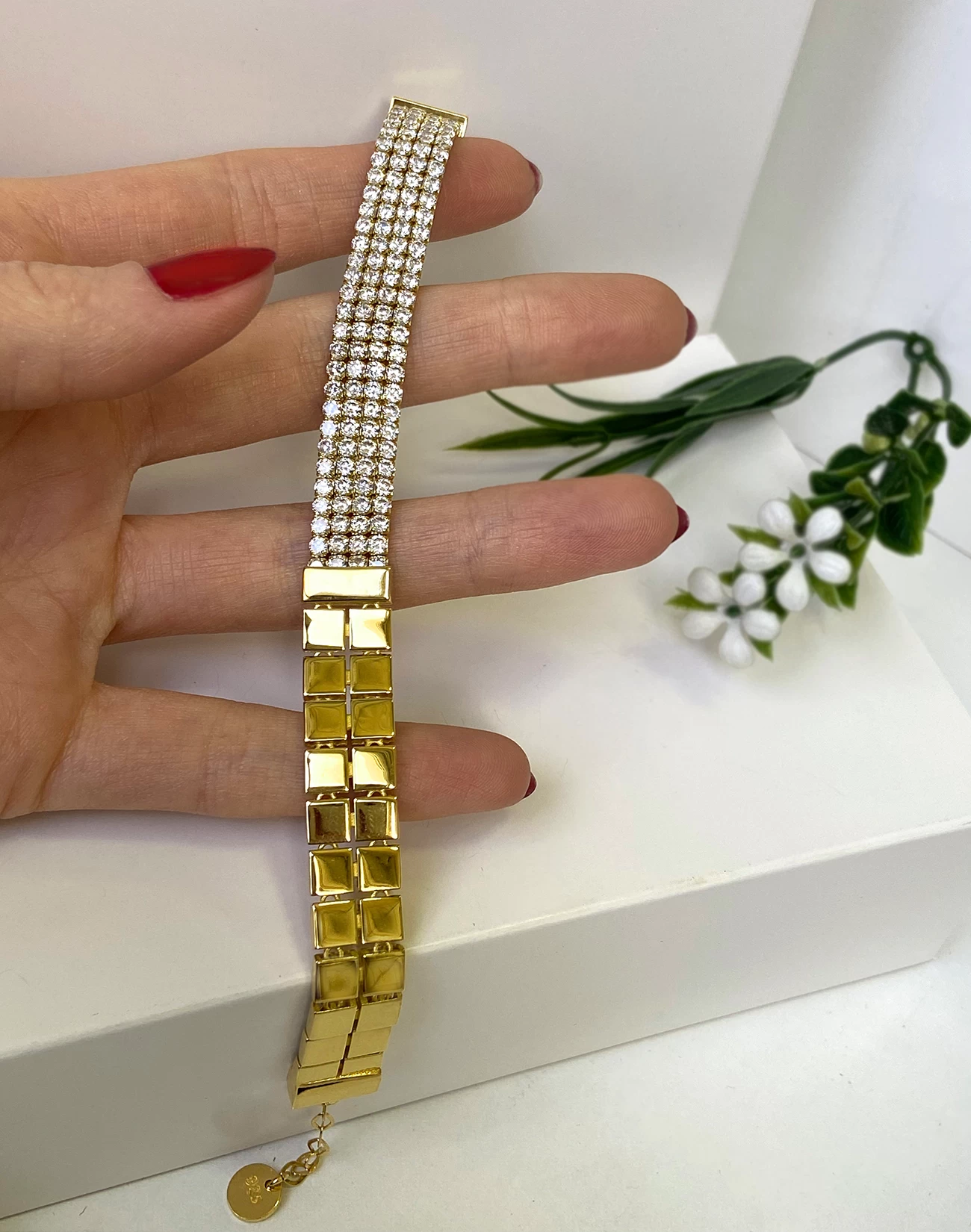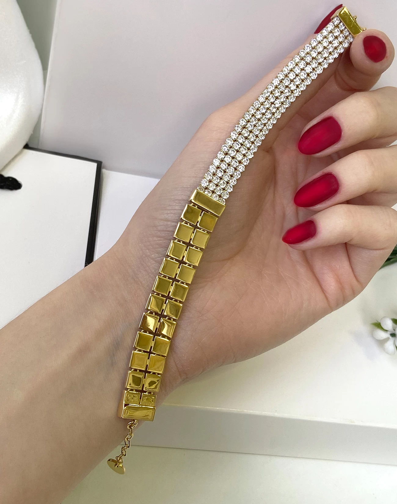 Kelepçe Modeli Çift Sıra Taşlı Baget Tek Taş Bileklik