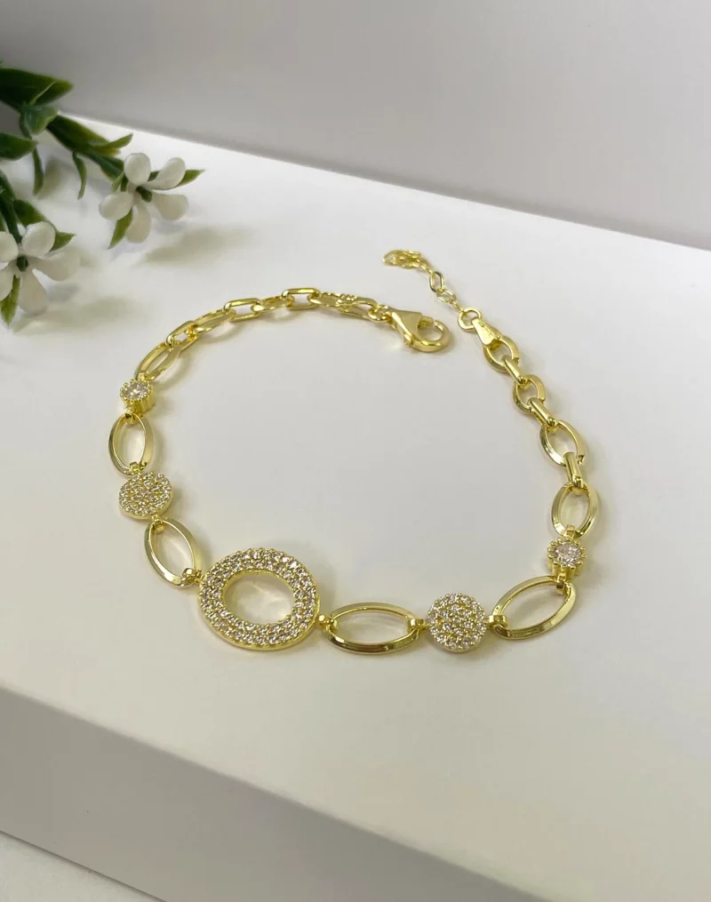 BERIA markasının özgün tasarımı olan bu içi boş Hallow bileklik, modern ve şık görünümüyle dikkat çekiyor. 925 ayar gümüş üzerine uygulanan 18 ayar altın kaplama, parçaya lüks bir ışıltı katarken, seçili halkalar üzerindeki taş detayları sofistikelik ve zarafeti artırıyor. Hem günlük kullanım hem de özel anlar için ideal bir aksesuar olan bu bileklik, kaliteyi ve estetiği bir arada arayanlar için mükemmel bir tercih sunuyor. BERIA’nın ustalıkla işlediği bu parça, her gardıroba zamansız bir ek katıyor.