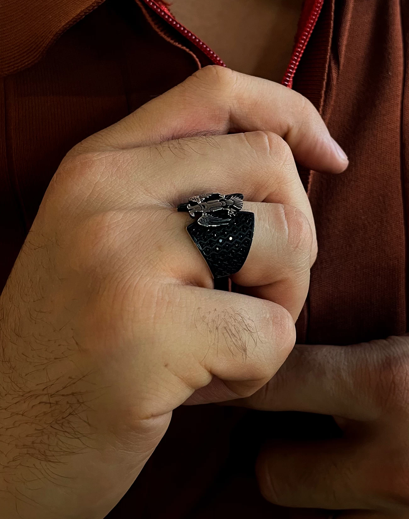 Bu yüzük, sadece bir aksesuar değildir; karakterin sessiz bir ifadesidir. Onu taşıyan kişi, gücünü göstermek için söze ihtiyaç duymaz. Kartal figürü, bağımsızlığı ve özgürlüğü temsil ederken, yüzüğün ağırbaşlı formu lider ruhlu erkeklere hitap eder. Günlük kullanımda dahi iddiasını koruyan tasarımı, klasik ve modern tarzlarla uyum sağlayarak her stile güçlü bir dokunuş katar.