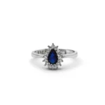 Bu yüzükte kullanılan damla kesim taş, romantizmin ve zarif duyguların simgesidir. Antik mücevher tasarımlarından ilham alınarak geliştirilen bu model, klasik çizgileri modern bir dokunuşla yeniden yorumlar. Yüzüğün ışıltısı yalnızca taşlardan değil, aynı zamanda detaylara verilen özen ve dengeli tasarım oranlarından gelir.