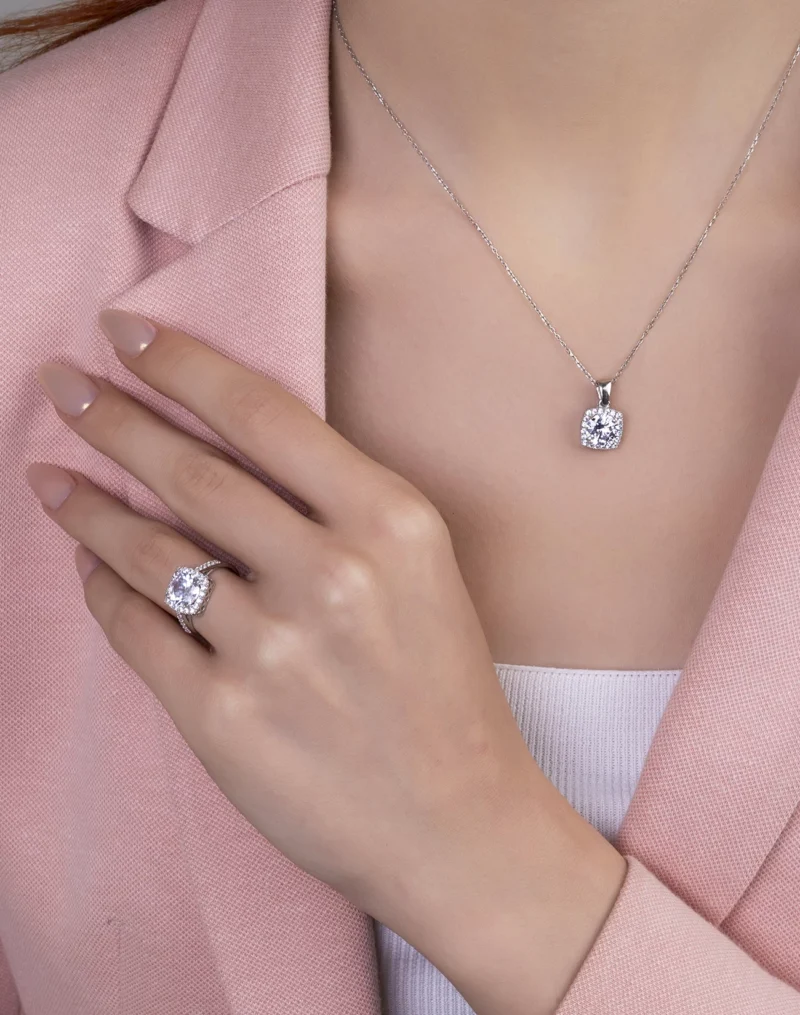 Diamond Design Tek Taşlı Kolye ve Yüzük Kombin