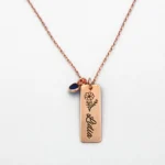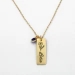 Kişiselleştirme: İsminiz ve doğum çiçeğinizle kişiselleştirilmiş bu çubuk kolye, sizi özel hissettirecek.