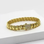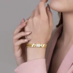 Zarafeti ve sofistike tasarımı ile göz dolduran bu özel bileklik, yüksek kaliteli 14 ayar altın kaplama ile işlenmiştir, parlaklığını uzun süre korur. Göz alıcı zirkon taşlar ise bilekliğe ekstra bir ışıltı ve lüks bir dokunuş katar