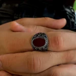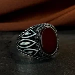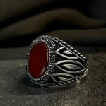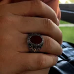 Günlük kullanımda güçlü bir imza parça olarak tercih edilebilen bu tasarım, klasik takımlardan spor-şık kombinlere kadar her tarza anında adapte olur. Akik taşının sıcak tonu ve keskin hatları sayesinde modanın geçici akımlarından etkilenmez; kalıcı, köklü ve güven veren bir şıklık anlayışını temsil eder. Her ortamda ağırlığını hissettiren bu yüzük, kalabalıklar içinde sıradanlaşmak istemeyen, duruşunu net çizgilerle ortaya koyan erkekler için tasarlanmıştır.