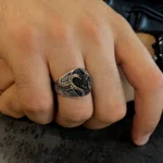 BERIA imzasını taşıyan bu model, ustalıkla işlenmiş yan detayları ve el işçiliği kalitesiyle farkını ilk bakışta hissettirir. Gümüşün doğal gücü, modern tasarım öğeleriyle birleşerek maskülen ama dengeli bir estetik oluşturur. Formun akışkanlığı ile gümüşün sağlamlığının usta işi birlikteliği, yüzüğe hem modern bir heykel hem de zamansız bir güç simgesi karakteri kazandırır. Bu uyum, tasarımın hem bugünle bağ kurmasını hem de geleceğe aktarılan bir sanat objesi olmasını sağlar.
