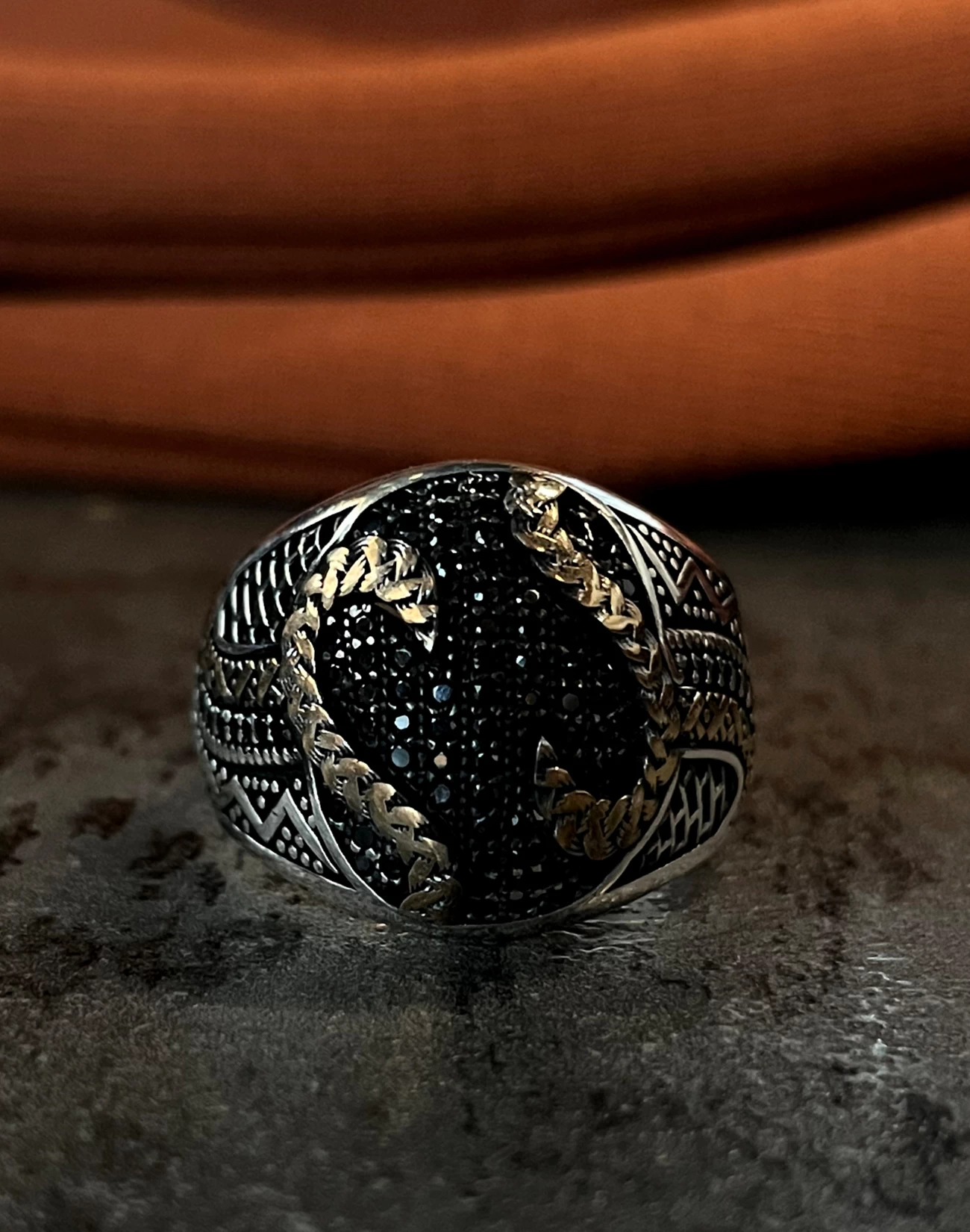 Tasarımda kullanılan ve adeta bir labirenti andıran karmaşık desenler; yaşamın çok katmanlı yapısını, tecrübeyi ve bu karmaşanın içindeki sarsılmaz iradeyi simgelerken aynı zamanda modern sanatın özgür formlarından ilham alan bir estetik sunar. Parlak gümüşün ışıltısı ile siyah mikro taşların yarattığı karanlık doku arasındaki dengeli birleşim, tasaraıma maskülen bir enerji kazandırır. Bu yüzük, sadece görsel bir aksesuar değil, aynı zamanda takan kişinin çok yönlü karakterini ve özgün stilini yansıtan sessiz bir imza öğesidir. Gösterişi karmaşanın içindeki rafinelikte hissettiren yapısıyla, güçlü ve özgüvenli bir ifade sunar.