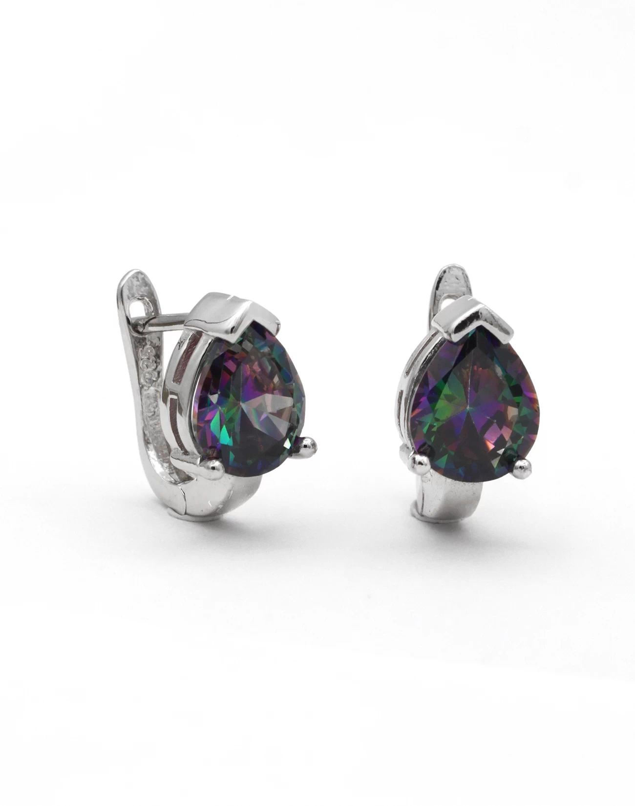 Mistik Topaz Damla Tek Taş Gümüş Küpe