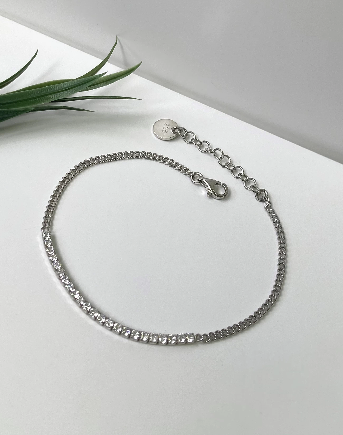 Zariflik ve modern tasarımın buluştuğu nokta: “Modern Pırlanta Modeli Gümüş Su Yolu Bileklik”. 925 ayar gümüşten ustalıkla işlenmiş bu bileklik, rodyum kaplama ile parıldayan bir görünüm sunar. İnce ve şık tasarımıyla, her türlü kıyafetinizle kusursuz bir uyum sağlar ve günün her anında eşsiz bir stil vurgusu yapmanıza olanak tanır.