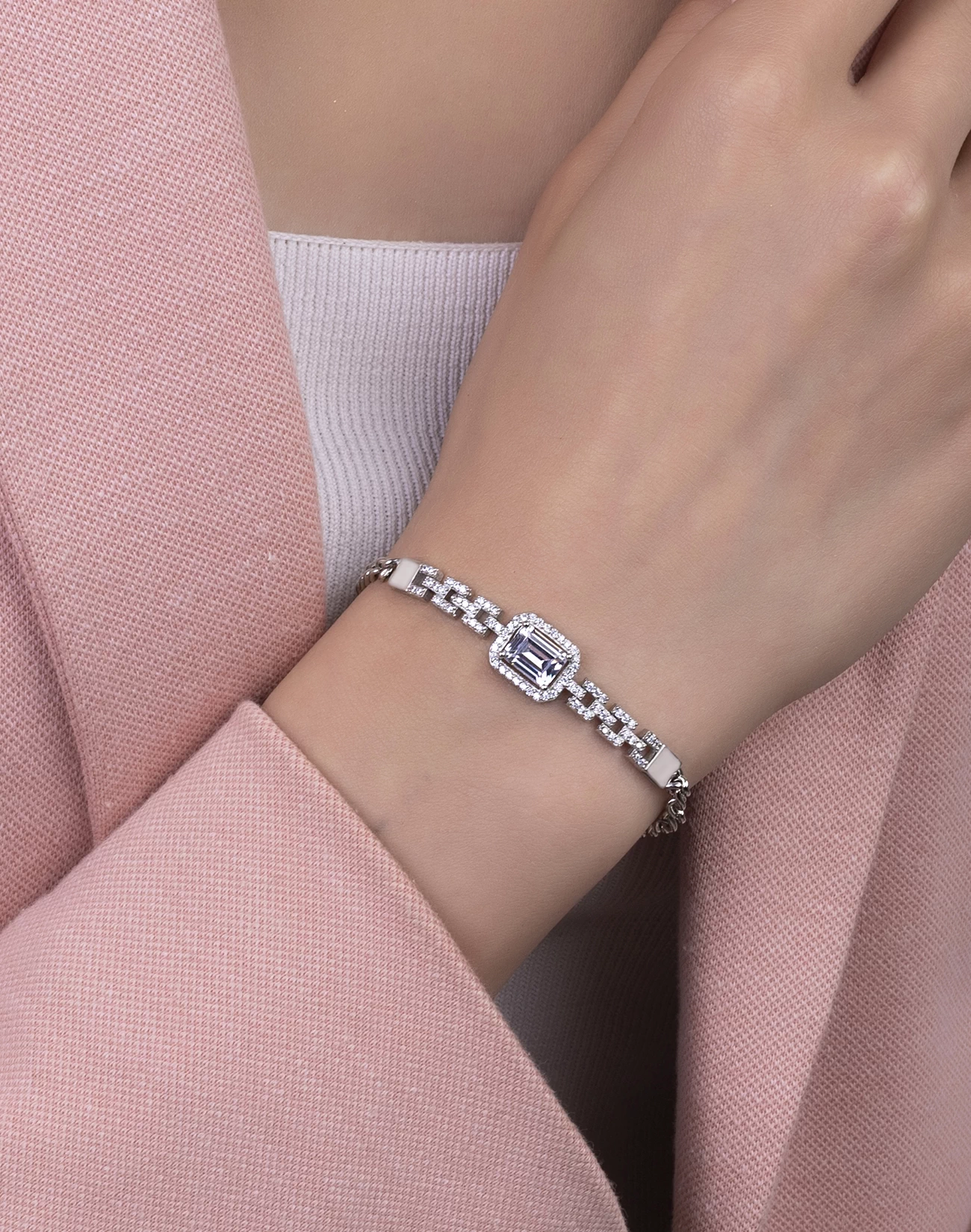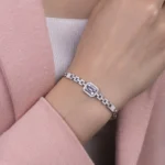 Konfor ve Kullanım Hafif yapısı ve ayarlanabilir zinciri sayesinde bu bileklik, her bileğe uyum sağlayacak şekilde tasarlanmıştır. Gün boyu rahatlıkla takılabilir ve kullanımı oldukça konforludur. Hem sade hem de gösterişli bir tasarıma sahip bu bileklik, her zaman şık ve ışıltılı görünmenizi sağlar.