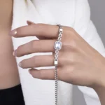 Baget Zirkon Taş Bilekliğin merkezinde yer alan göz alıcı baget kesim zirkon taş, modern ve sofistike bir dokunuş sağlar. Bu etkileyici taşın çevresi, mikro zirkonlarla bezenmiş olup, bilekliğe ekstra bir ışıltı katar. Şıklığı detaylarda arayanlar için mükemmel bir tercih.