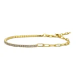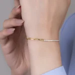 - Tasarım Detayları: Bilekliğin yarısı zarif su yolu tasarımıyla, diğer yarısı ise klasik forse zincir detayıyla bezeli. Bu iki farklı stilin mükemmel uyumu, modern ve klasik güzellik anlayışlarını bir arada sunar.