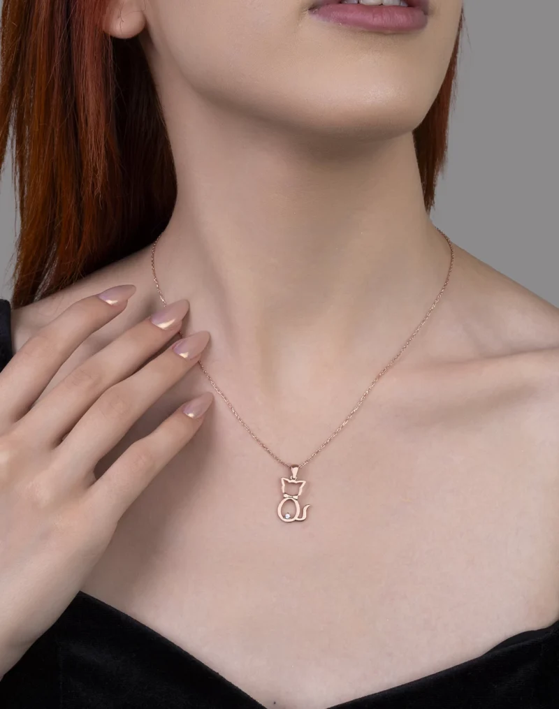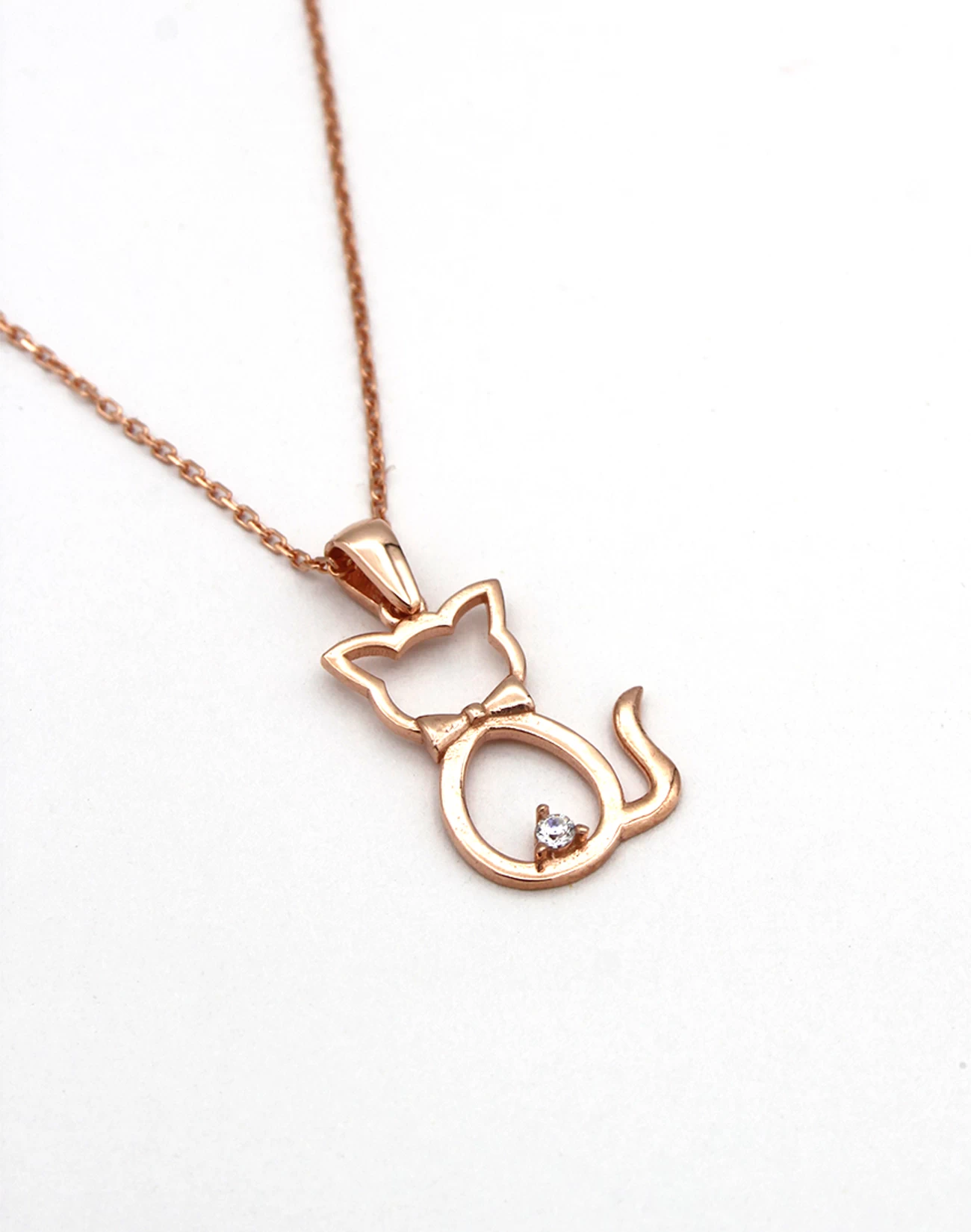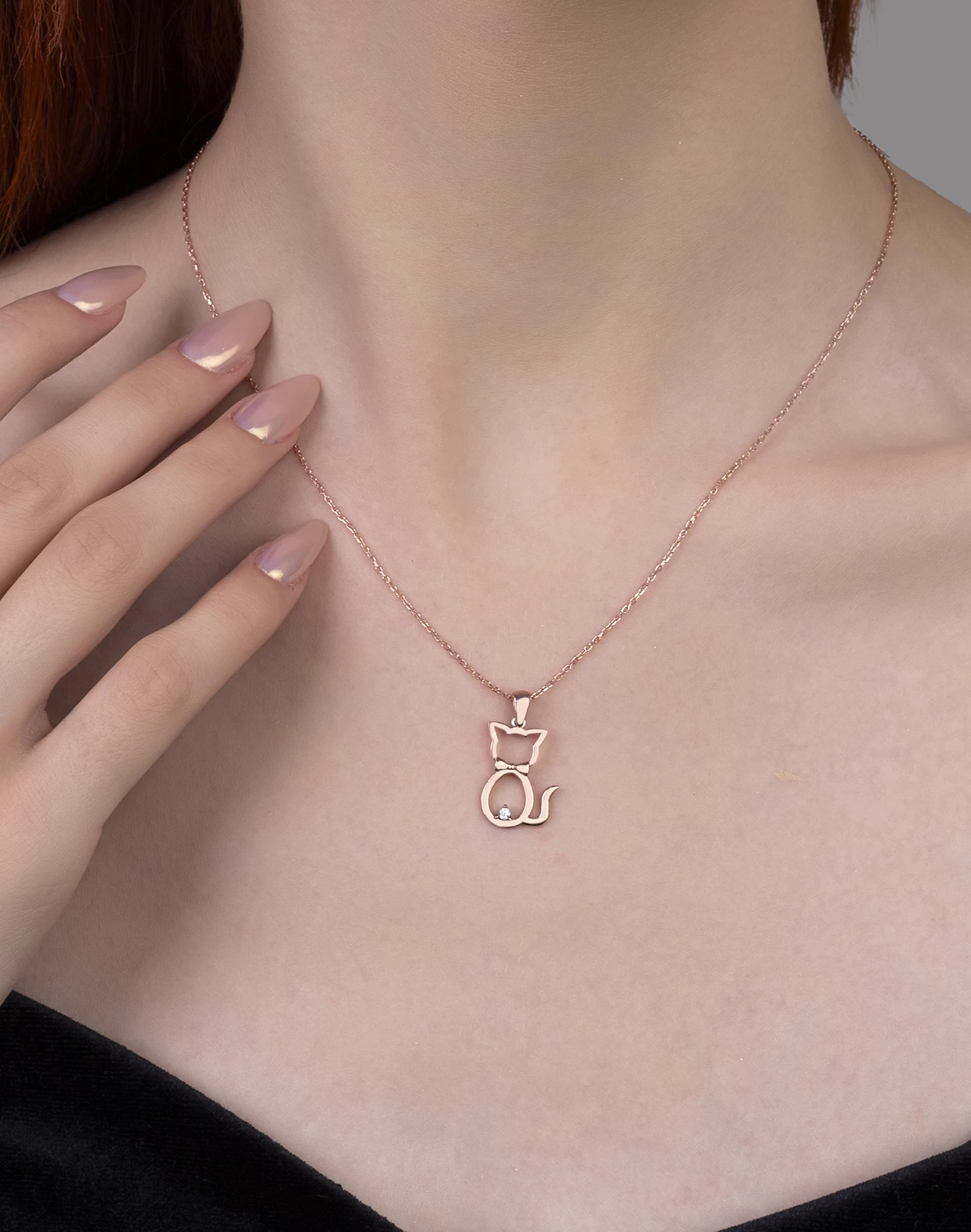 Papyonlu kedi figürü, kolyenin ana unsurlarından biridir. Nazik ve sevimli bir ifadeyle işlenmiş olan bu figür, taşıdığı zarafeti ve çekiciliğiyle gözleri üzerine çeker. Her bakışta fark edilen bu figür, kolyenin benzersiz bir karakter kazanmasını sağlar.