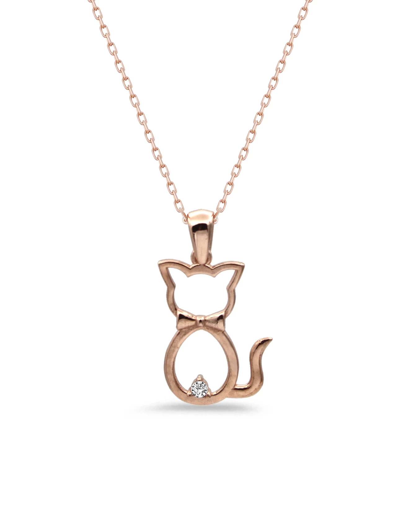 BERIA Marka Papyonlu Gümüş Tek Taşlı Kedi Kolye: Zarafetin İncelikle İşlenmiş Hali