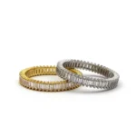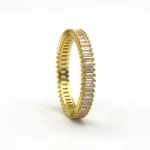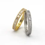 Zamansız şıklığın ve zarafetin modern bir yansıması olan Pırlanta Dizayn Baget Tam Tur Yüzük, ince işçilikle hazırlanmış tasarımı ve göz alıcı ışıltısıyla dikkat çeker. Yüzüğün tamamını saran baget kesim taşlar, pırlanta dizayn detaylarıyla birleşerek adeta ışığı yakalayan bir takı formuna dönüşür. Her bir taşın simetrik ve dengeli yerleşimi, yüzüğün kusursuz bir görünüme sahip olmasını sağlar.