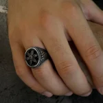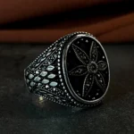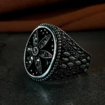 Modern çizgilerle şekillenen bu özel tasarım, klasik erkek takısı anlayışına derin bir bağlılık ve sarsılmaz bir anlam kazandırır. 925 ayar gümüşten üretilen Sadakat Yüzüğü Gümüş Erkek Yüzüğü, net hatları ve dengeli formuyla güçlü bir duruş sergilerken, detaylarında gizlenen sembolizmle sofistike bir şıklık sunar. Yüzüğün merkezinde yer alan derin siyah taş yüzeyi, çevresini saran mikro işlemeli gümüş dokularla birlikte etkileyici ve asil bir görünüm oluşturur.