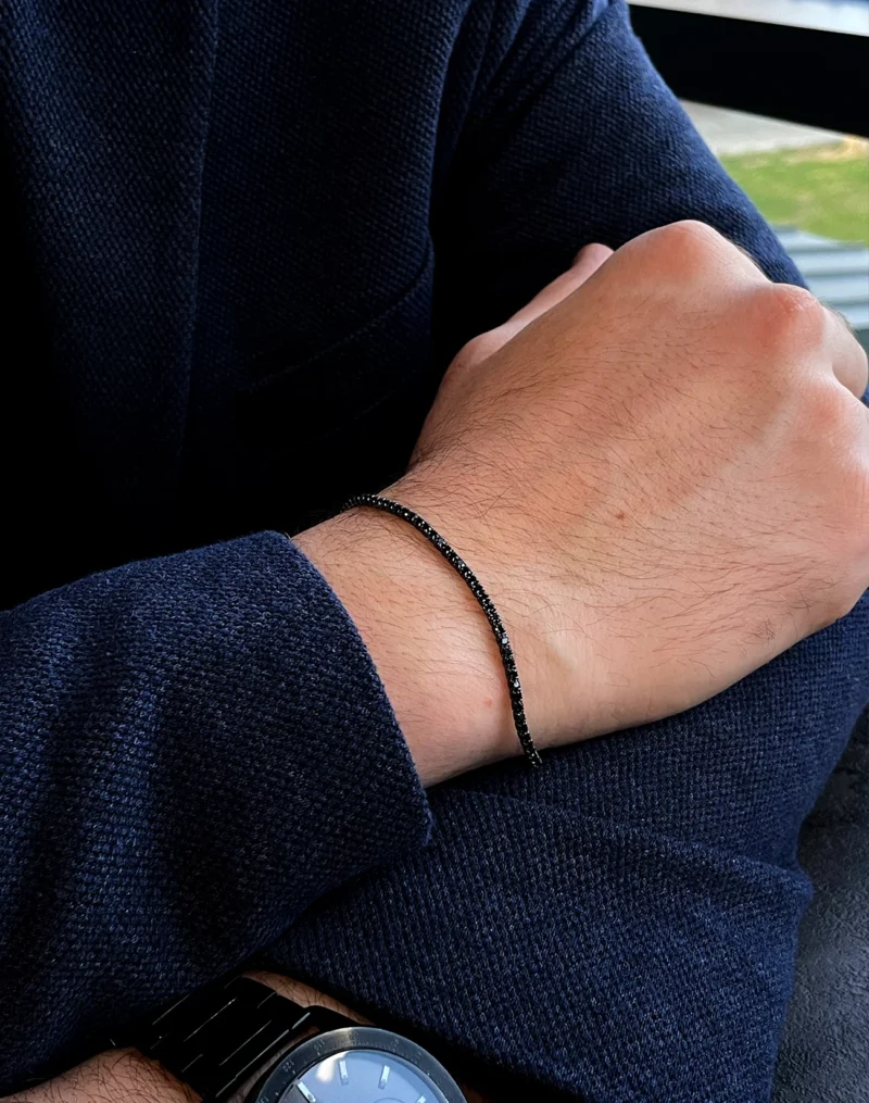 Be the first to review “Sade Tasarım Siyah Taşlı Su Yolu Gümüş Erkek Bilekliği”