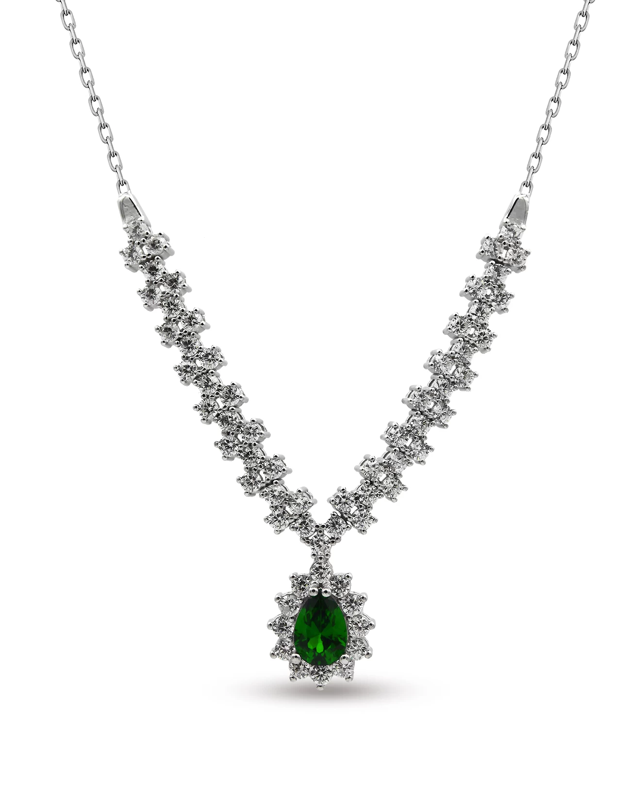 Serpme Taşlı Pırlanta Modeli Damla Zümrüt Takı Seti