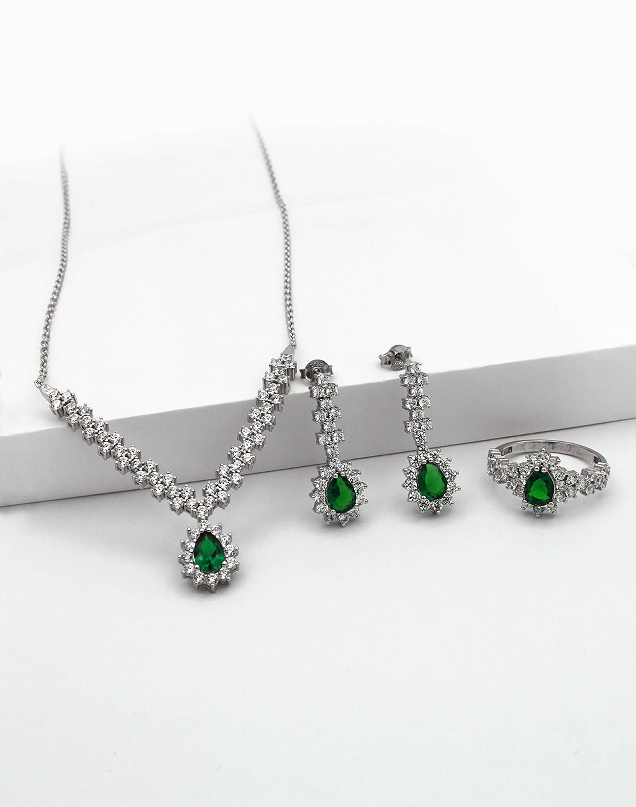 Damla Forest Tek Taşlı Gümüş Takı Seti