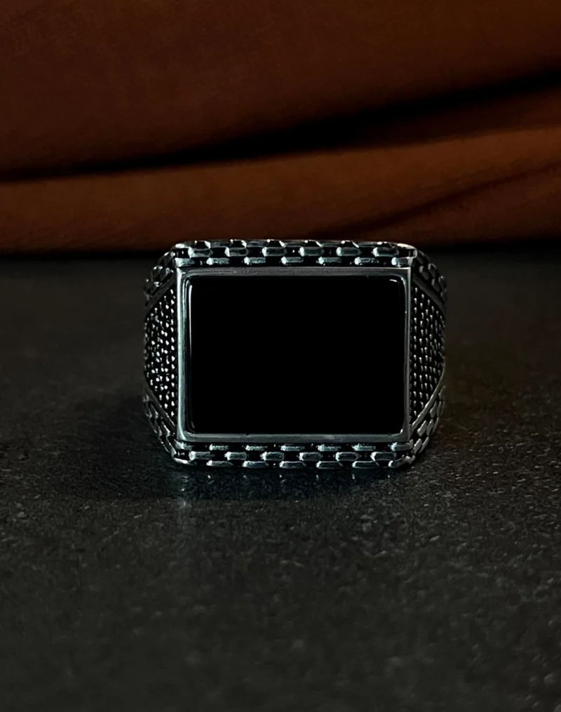 Tasarımda kullanılan ve endüstriyel estetiği anımsatan geometrik desenler, sürekliliği ve sarsılmaz bir kararlılığı simgelerken aynı zamanda modern mimariden ilham alan zamansız bir estetik sunar. Parlak gümüş yüzeyler ile mat dokuların dengeli birleşimi, tasarıma maskülen bir dinamizm kazandırır. Bu yüzük, sadece görsel bir aksesuar değil, aynı zamanda takan kişinin karakterini yansıtan sessiz bir stil öğesidir. Gösterişten uzak ama iddiasını her detayda hissettiren yapısıyla, güçlü ama rafine bir ifade sunar.