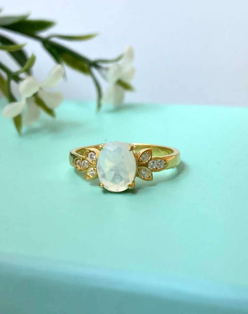 Vintage Tasarım Ay Taşı Gümüş Yüzük