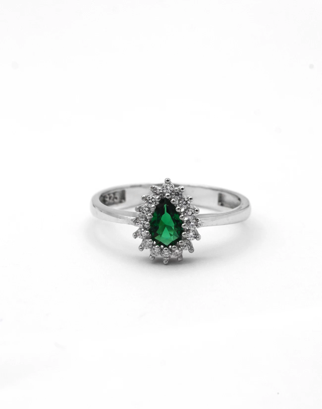 Zümrüt Renk Damla Anturaj Tasarım Yüzük