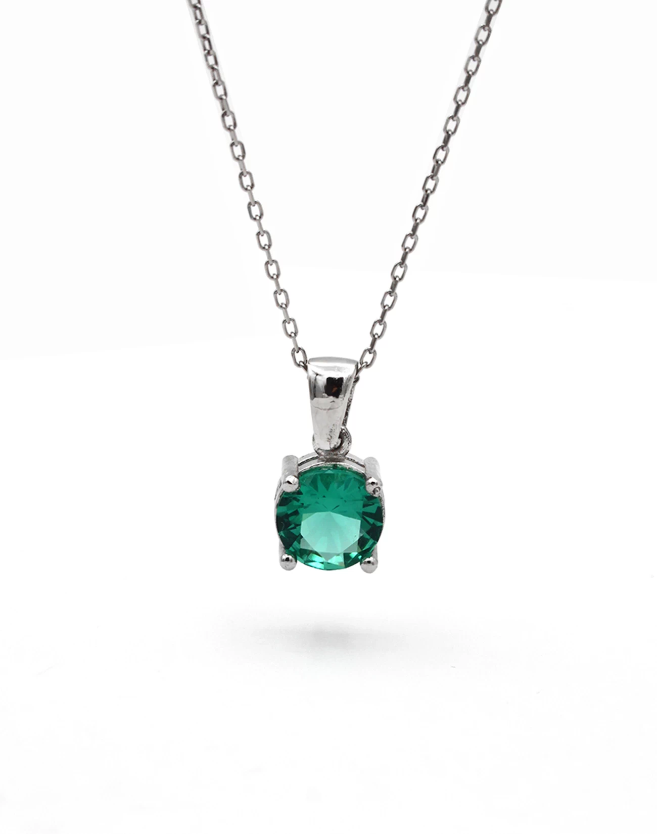 Zümrüt Renk Tek Taşlı Gümüş Kolye