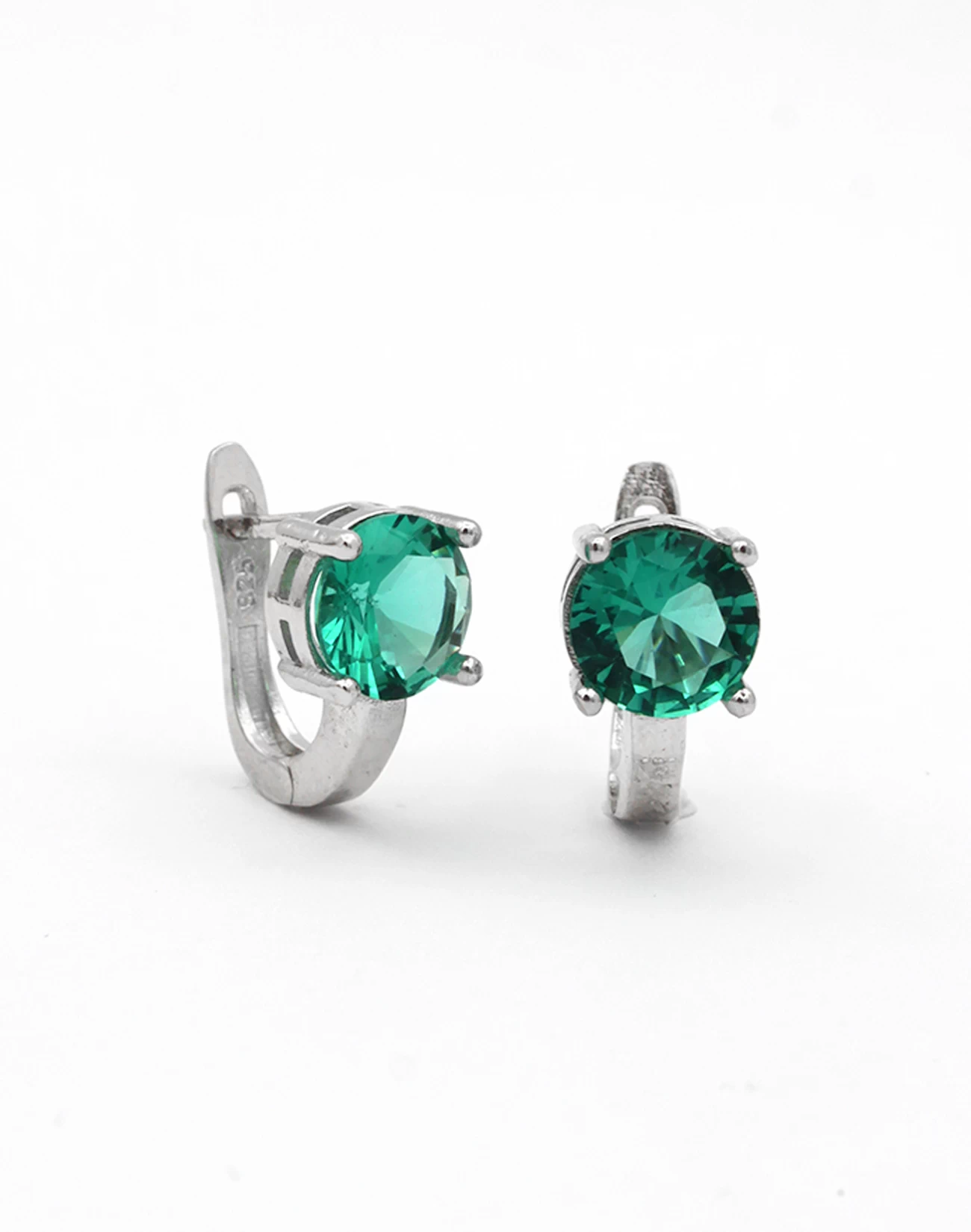 Zümrüt Renk Tek Taşlı Gümüş Küpe